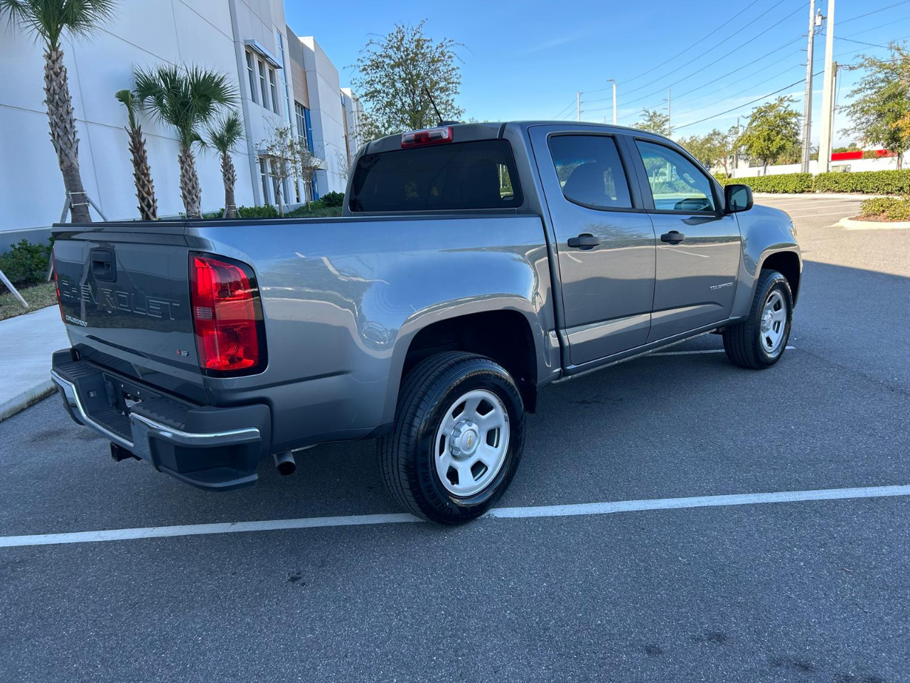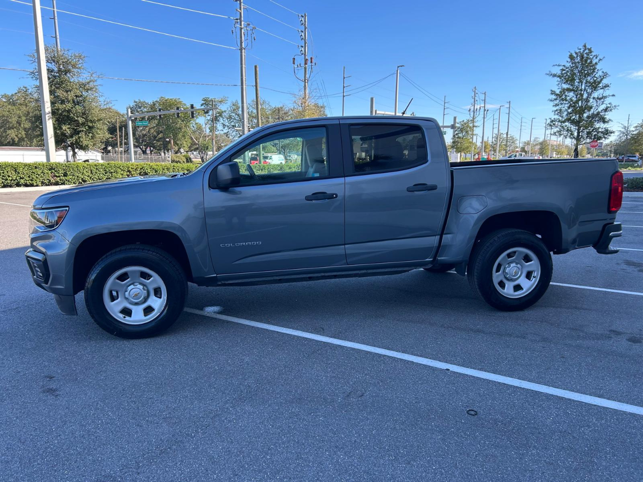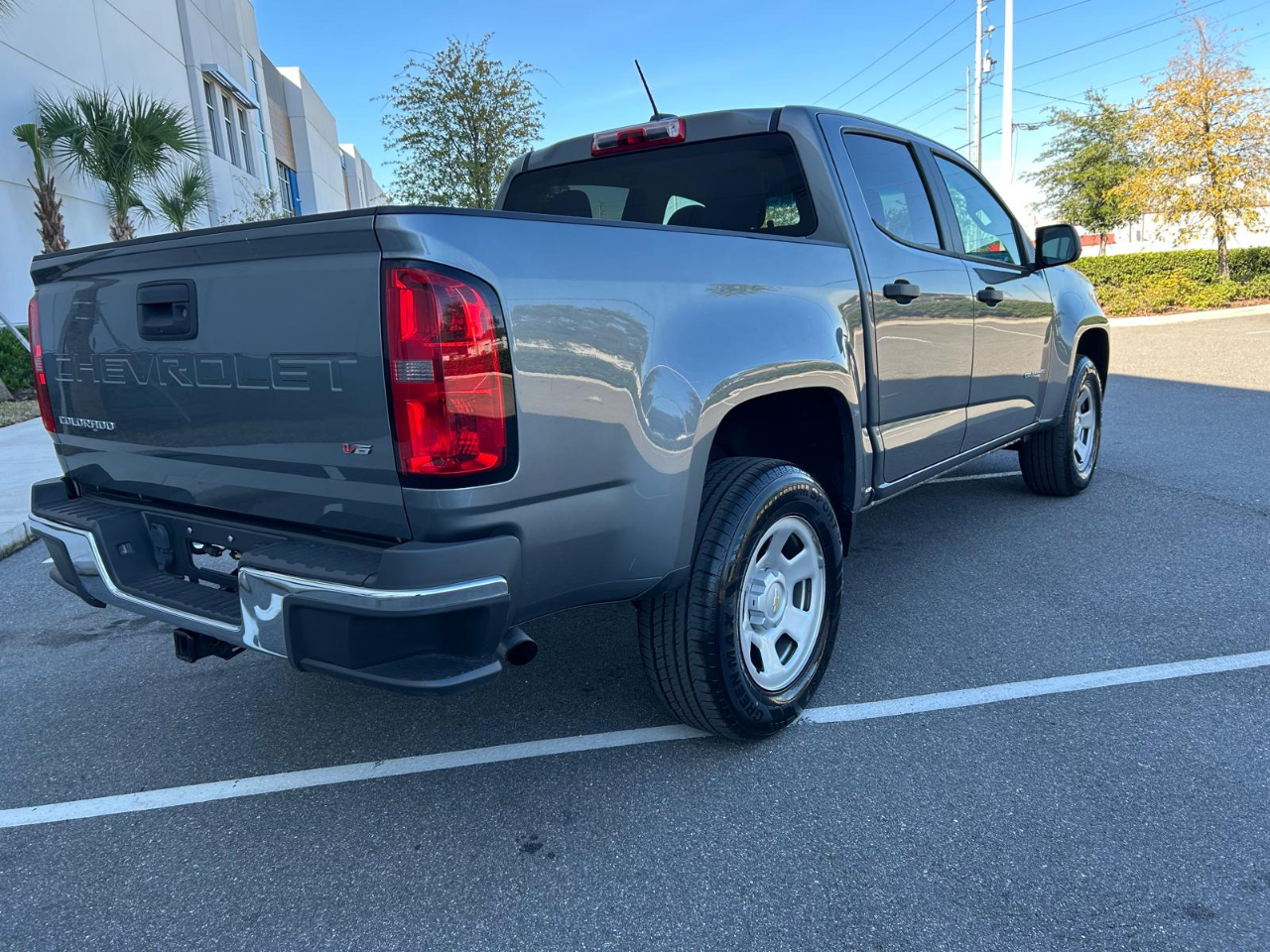 Introducing this sleek Gray 2021 Chevrolet Colorado! This stylish truck is ready to hit the road with its rear wheel drive and fully-boxed frame, making every drive a smooth and enjoyable experience. With a compact spare wheel and 4-wheel antilock disc brakes, you can feel confident wherever your adventures take you.